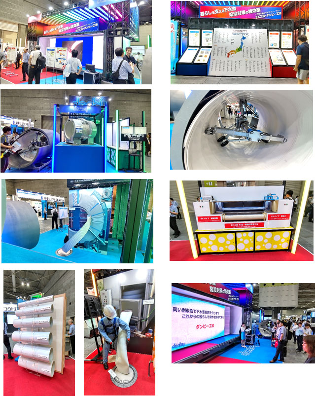 | 内 容 | (公社)日本下水道管路管理業協会主催の同施工展の弊協会ブースに、約130名の方のご来場を頂きました。 EX工法では、施工性、品質、臭気がないなどの特長を、ダンビー工法では、特に製管方法や充てん材の高流動性、急速硬化性を実感して頂きました。ご来場、ありがとうございました。 |