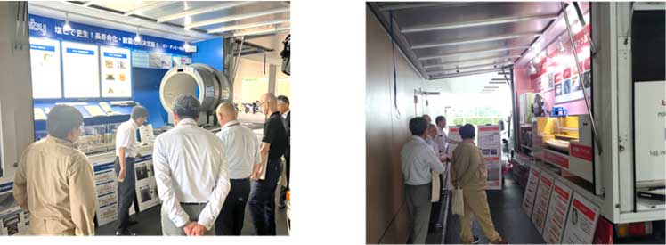 | 内 容 | EX工法およびダンビー工法をキャラバンカーにより説明をしました。 EX工法のEXパイプの拡径作業、ダンビー工法の製管機による製管作業を実演しました。 大勢の方々に参加を頂き、EX工法およびダンビー工法の優位性を説明することができました。 |